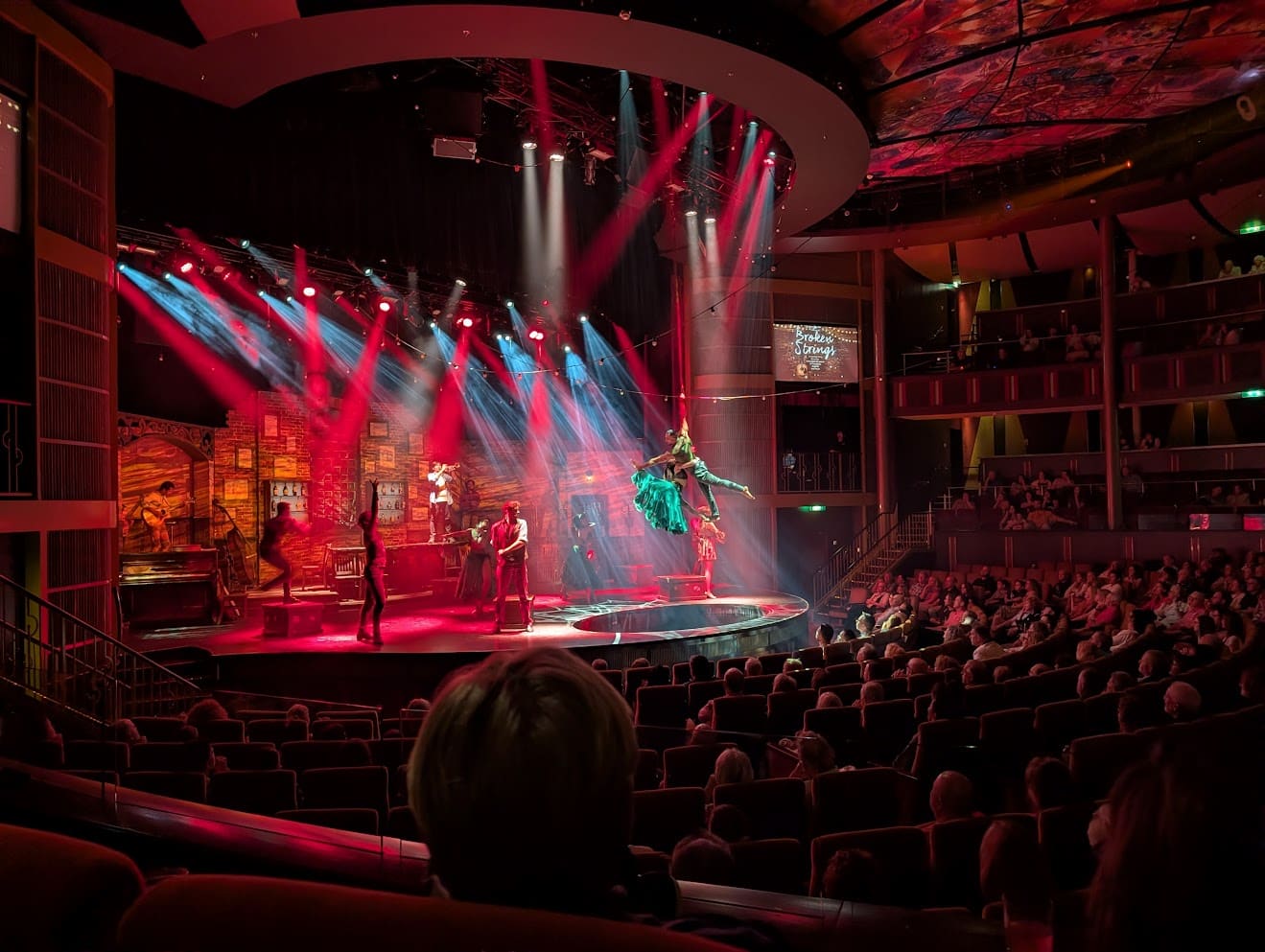 The songs were a mixture of contemporary tunes like “All of Me” by John Legend, “Don’t Wake Me Up” by Avicii, and “Rather Be” by Clean Bandit. Overall, it was decent cruise ship entertainment. I’d rank it over what I’ve seen on Norwegian’s ships, but not as strong as Royal Caribbean or Carnival’s newer shows, or even the shows on Celebrity’s newer ships, which lean into the acrobatics even more.