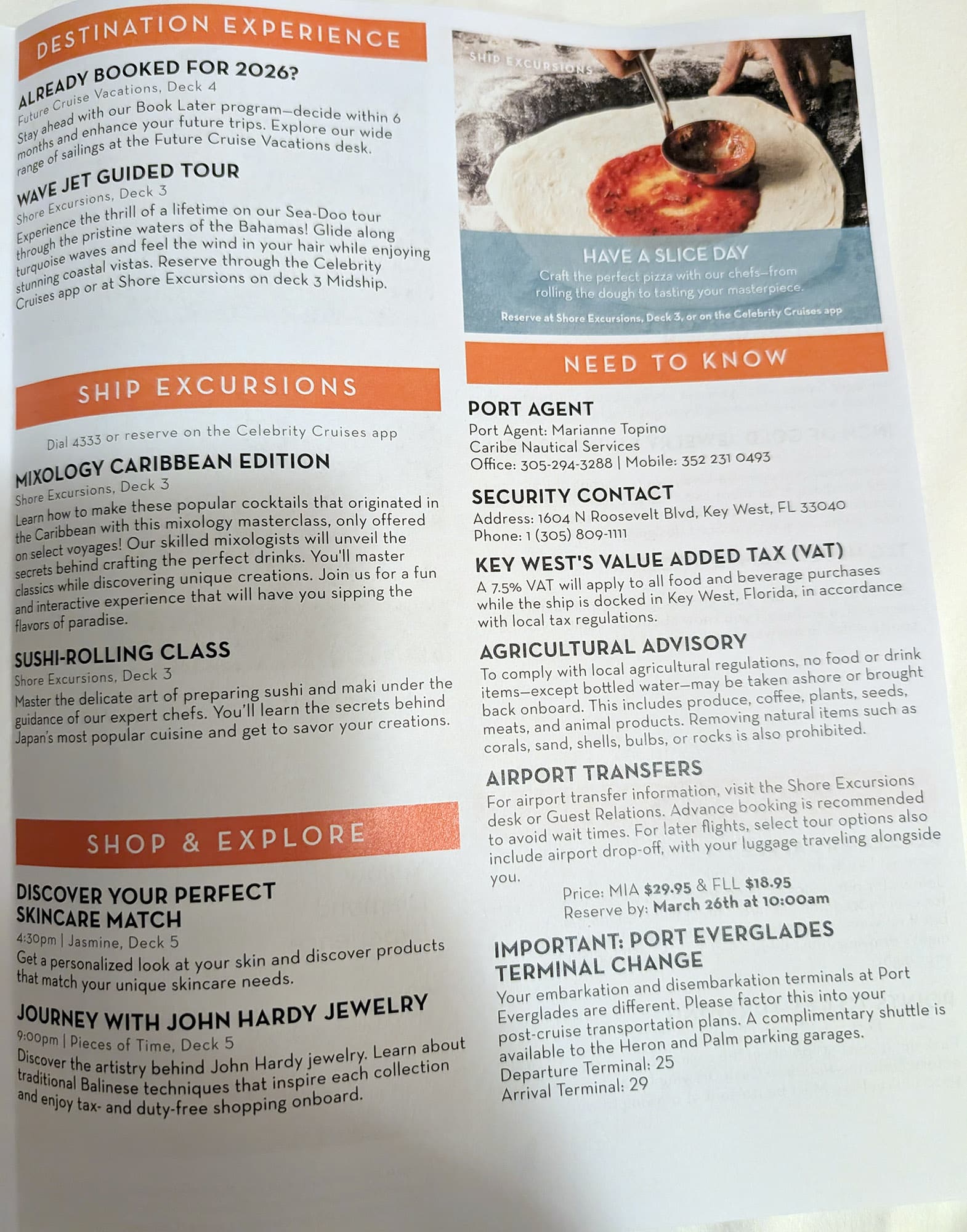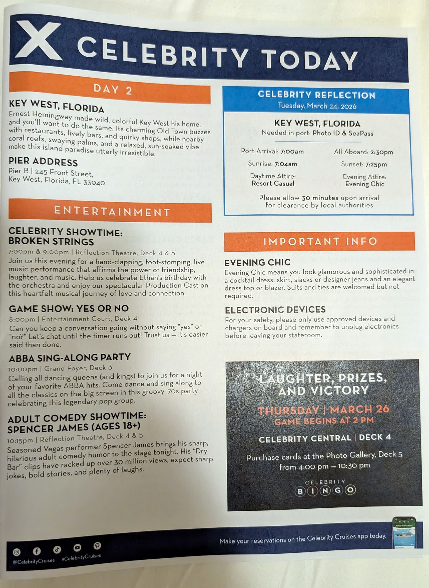 - Celebrity Reflection Cruise Blog Day 2 Schedule