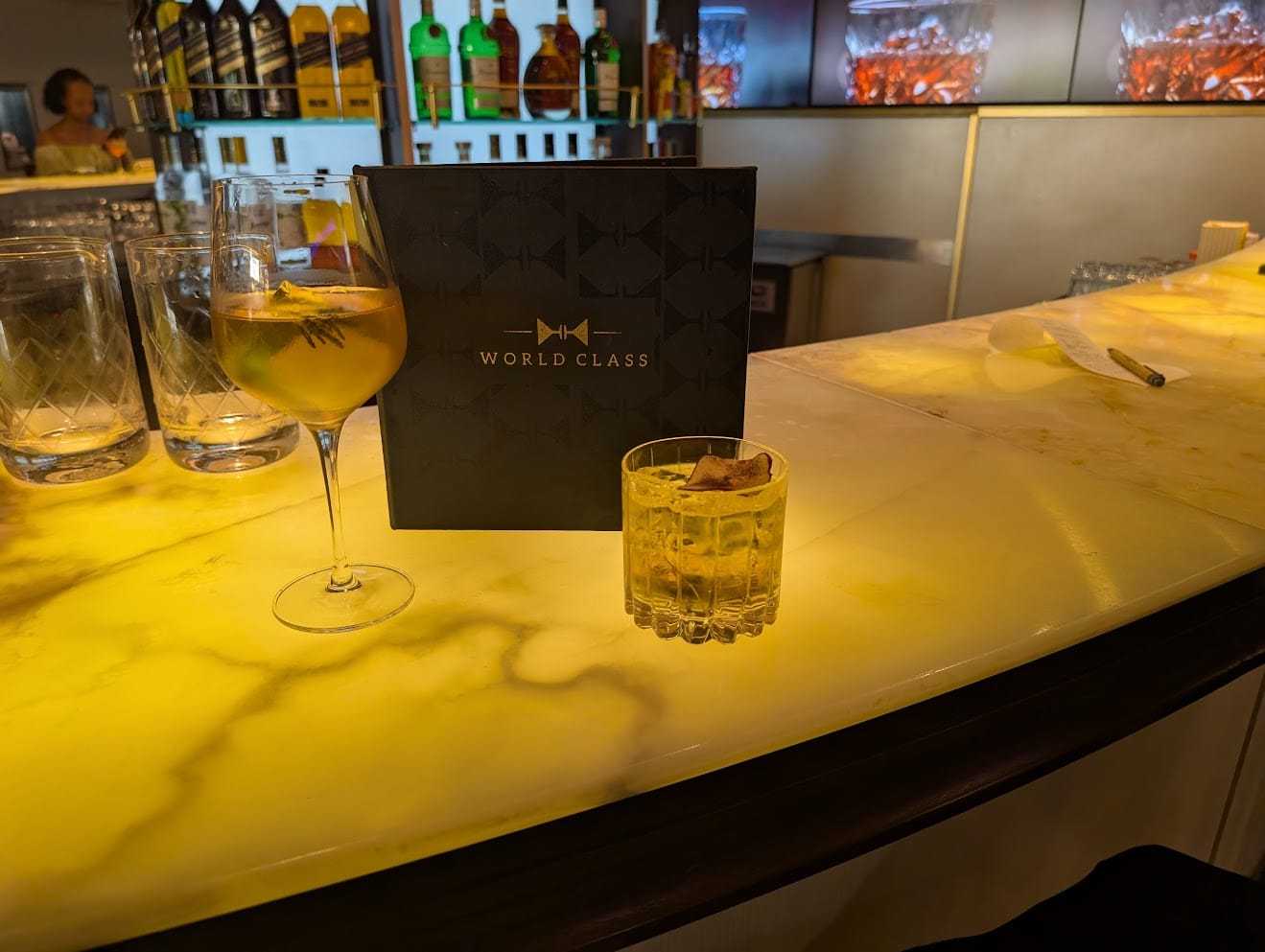 After dinner, we headed to the World Class Bar, which Celebrity describes as a “fine drinking” experience. Here, you’re supposed to enjoy the process of the bartenders making high-end craft cocktails using only the freshest ingredients and finest spirits. I’d heard rave reviews from my friend who sailed on a sister ship last year, but I hadn’t gotten to try it out yet because the Celebrity Apex didn’t have one. They omitted it from the first two Edge Class ships but brought it back for the rest after apparently realizing they needed more bars.