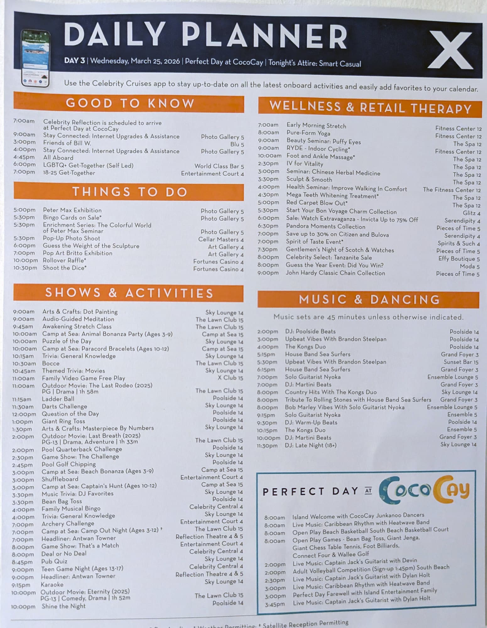 - Celebrity Reflection Day 3 Schedule