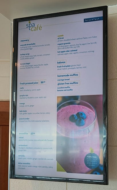 Overall, I don’t really get the appeal of Spa Cafe. I know some people love it, but it feels like wasted space in the Solarium that could be put to better use with more seating. The food options and portions are quite small, and because it’s not a real counter setup, making the drinks takes them a while. I’m surprised they couldn’t find a better venue for this, like up in the Lawn Club area, where they have two additional fee restaurants.
