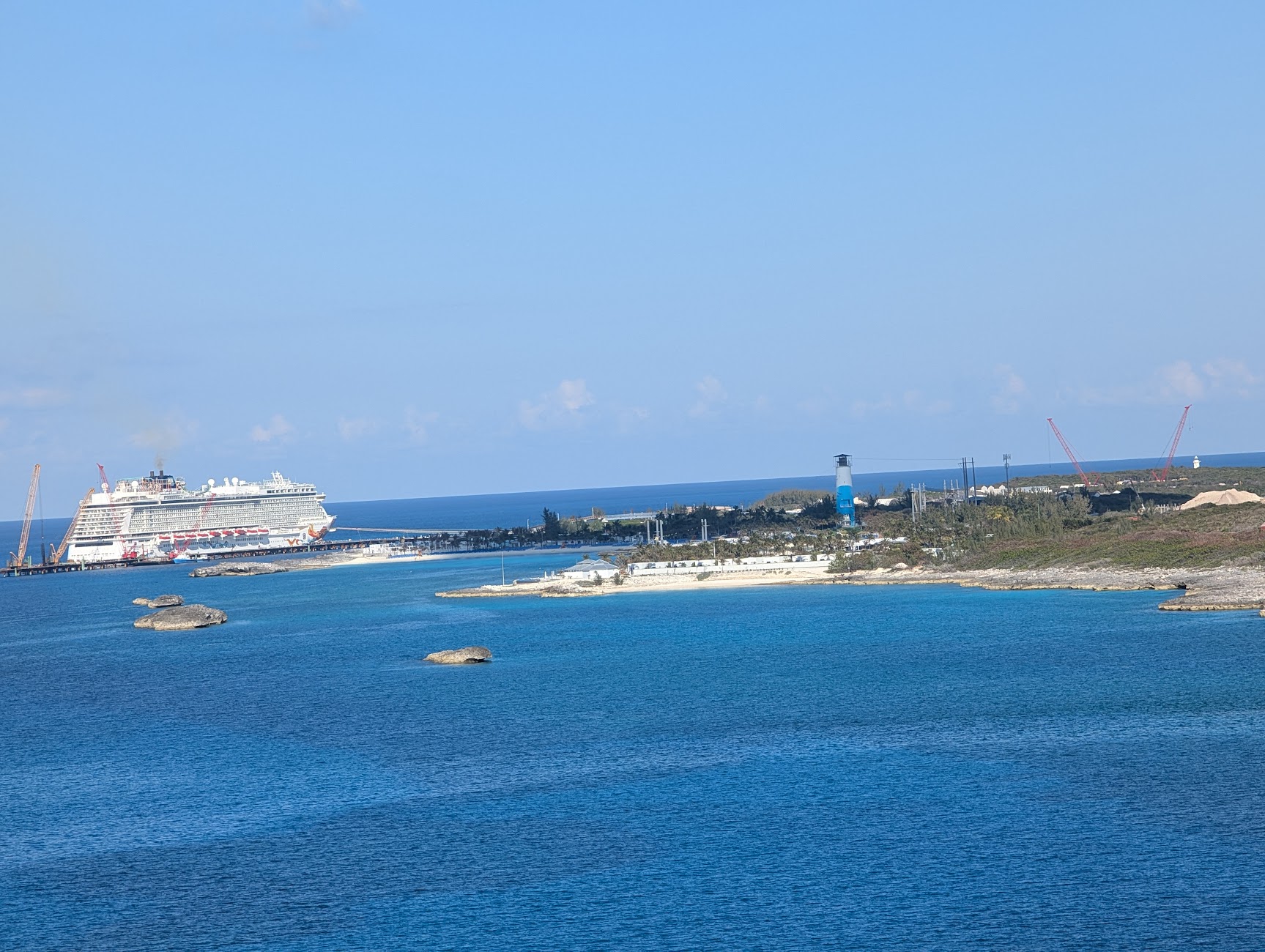 In the distance, I could see Norwegian Cruise Line’s private island in the middle of its construction project. They’re working on expanding their island, adding a waterpark to rival CocoCay’s, and putting in a dock to finally allow guests to walk onto the island rather than wait on slow water tenders. Unfortunately, the project is slow-moving, and I’m guessing many guests on Norwegian ships look enviously at Perfect Day as they’re waiting to tender back or miss the island altogether because the water is too choppy to tender safely.