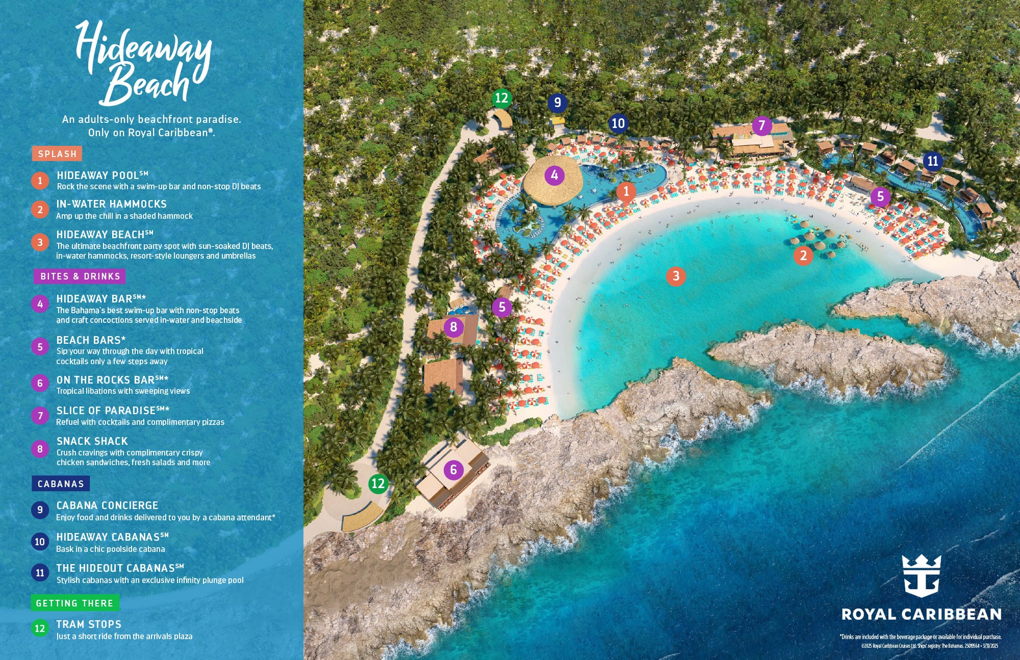 Tip: For Celebrity cruises, your cabin steward will leave towels in your cabin the night before for Perfect Day. If you want a fresh towel while on the island, just exchange it at a towel hut. Celebrity has different colored towels from Royal Caribbean, so they’ll make sure they give you the right ones back.