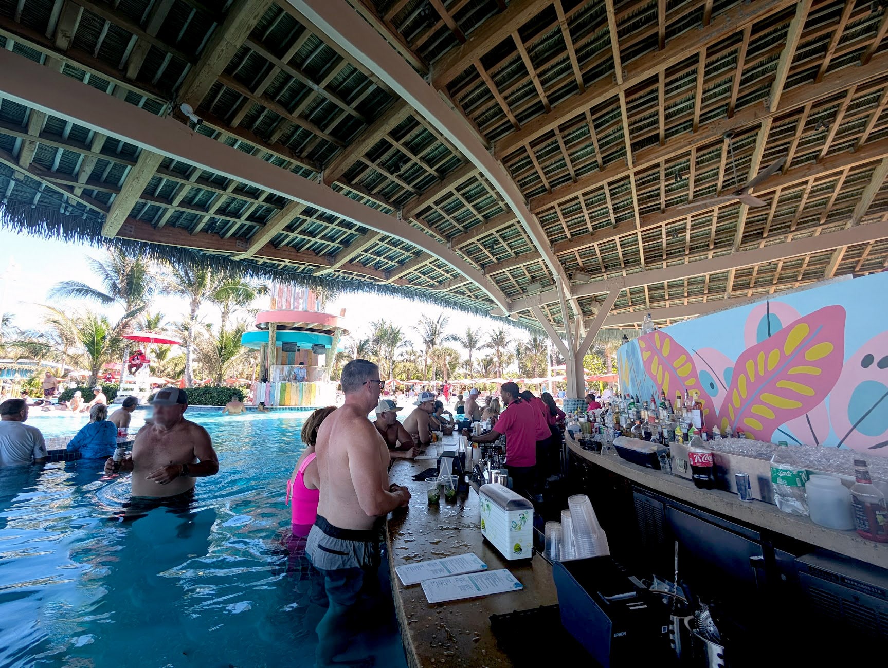 We relaxed in the water and enjoyed the atmosphere. The pool had a decent crowd, but it didn’t feel like “people soup” at all. Everyone had plenty of personal space. Around the area, people were playing floating games like basketball, a small volleyball net, and beer pong.