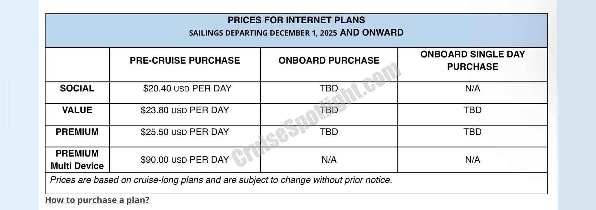 The leaked timing and pricing fit right in line with Carnival’s previous adjustments. December has become a common window for price changes, not only for Wi-Fi but also for the line’s CHEERS beverage package.