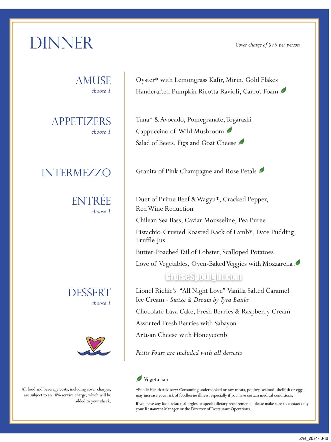 They're usually open for dinner. Specific times and schedules may vary, so always check your cruise schedule or app for exact details.