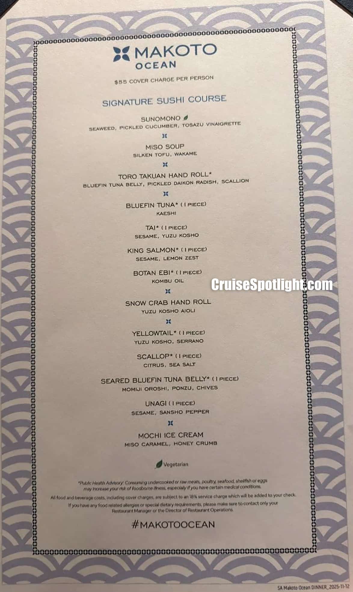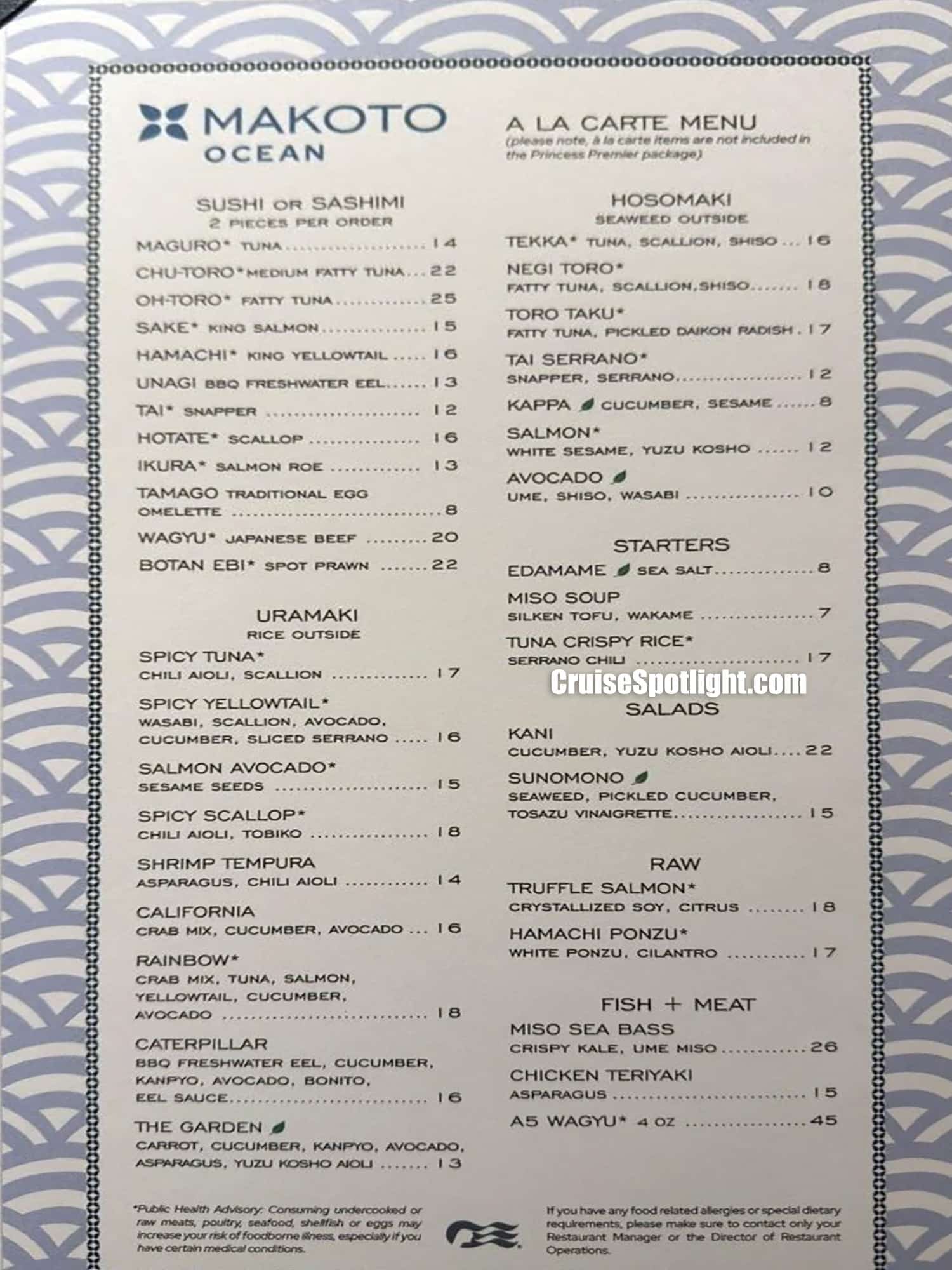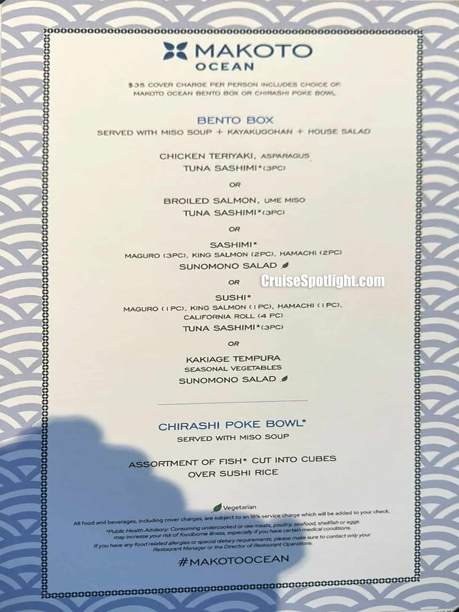 Makoto Ocean has a' la carte pricing of $60 per adult, $30 per child. Alcoholic drinks and soda cost extra.