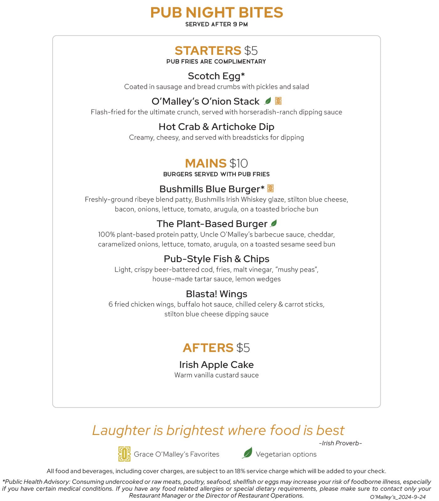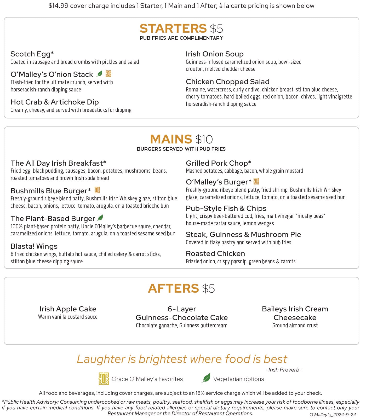 Menu is from Sun Princess, Oct 2024