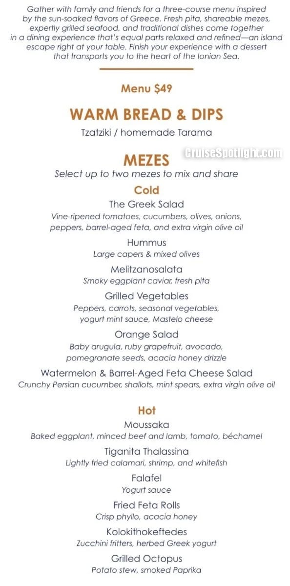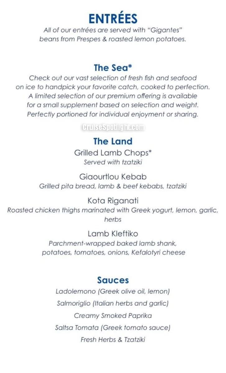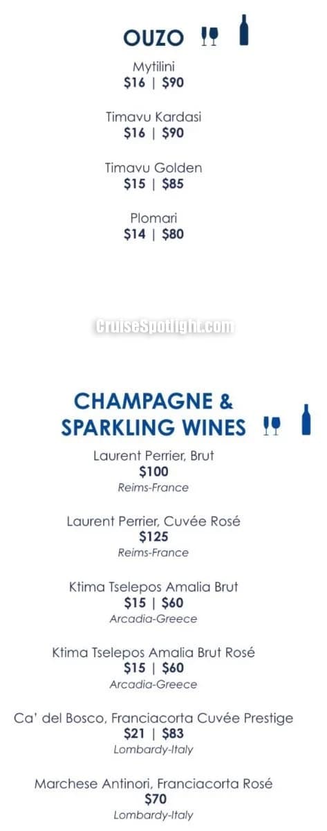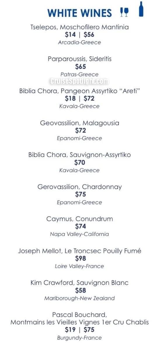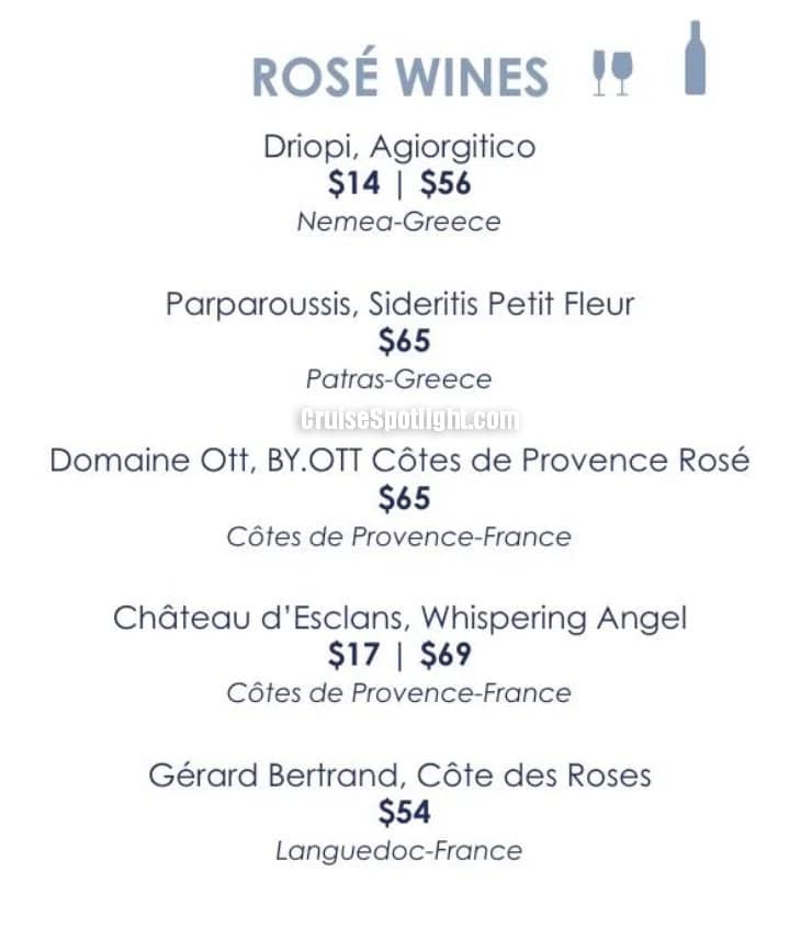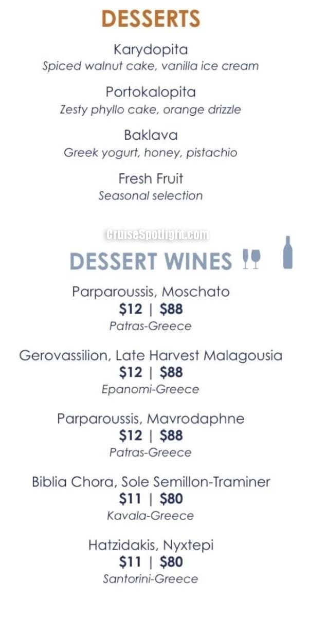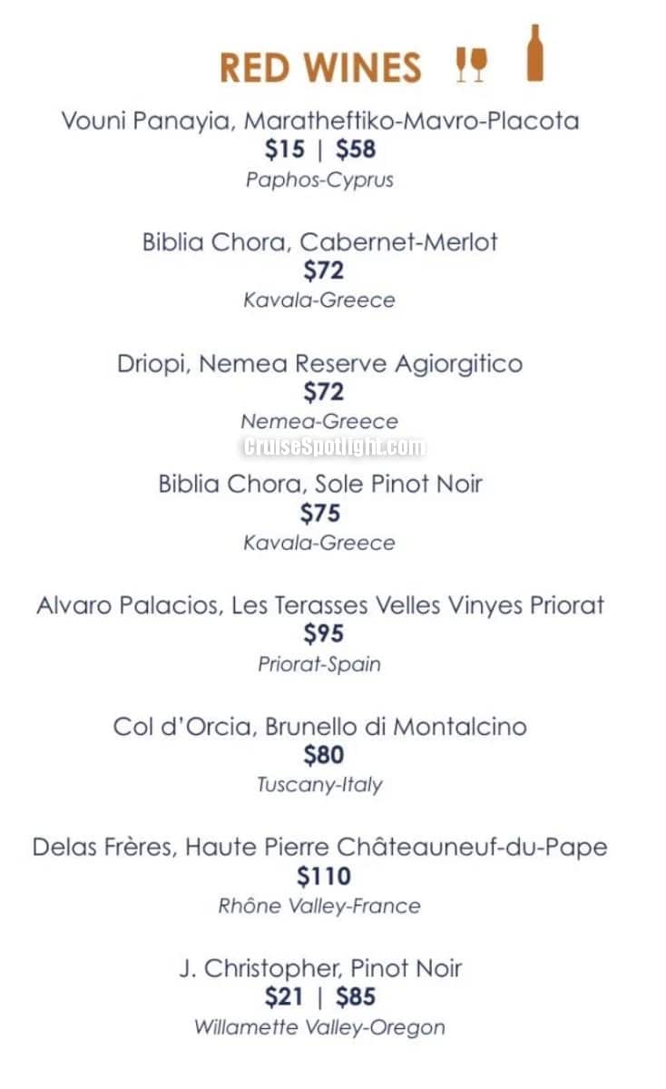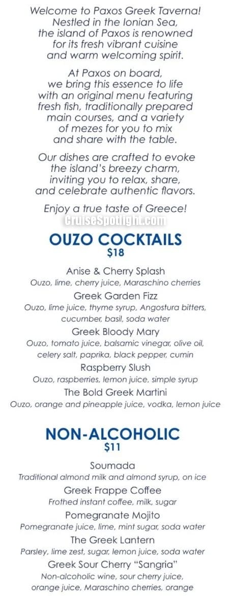 Paxos has a' la carte pricing of $49 per person ($39 if purchased pre-cruise). Alcoholic drinks and soda cost extra.