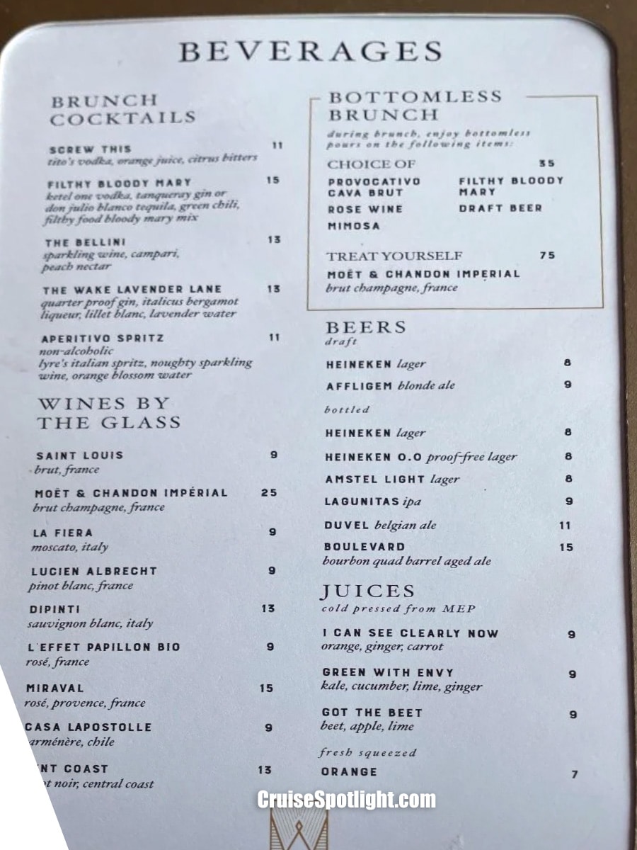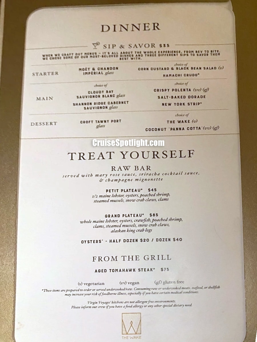 The Wake is included in the cruise fare so there is no additional cost to eat at this venue. Remember, beverages are not usually included and will be extra.