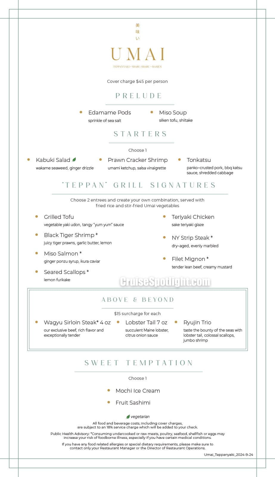 They're usually open for lunch and dinner. Specific times and schedules may vary, so always check your cruise schedule or app for exact details.