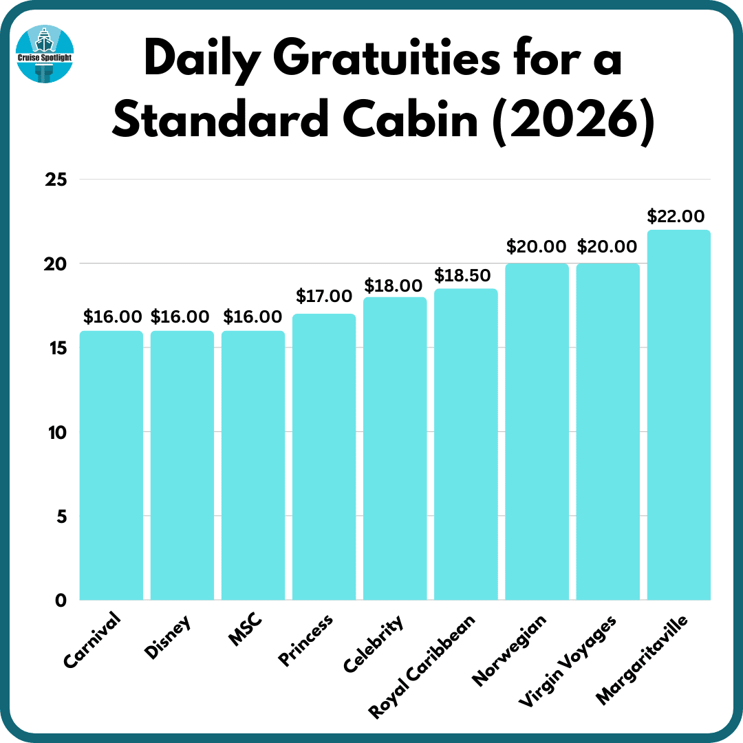 Margaritaville at Sea has quietly updated its website to show new daily gratuity amounts. These fees are charged per person, per day, once onboard the ship. The fee is currently $22 per person per day for standard cabins and $25 for suites.