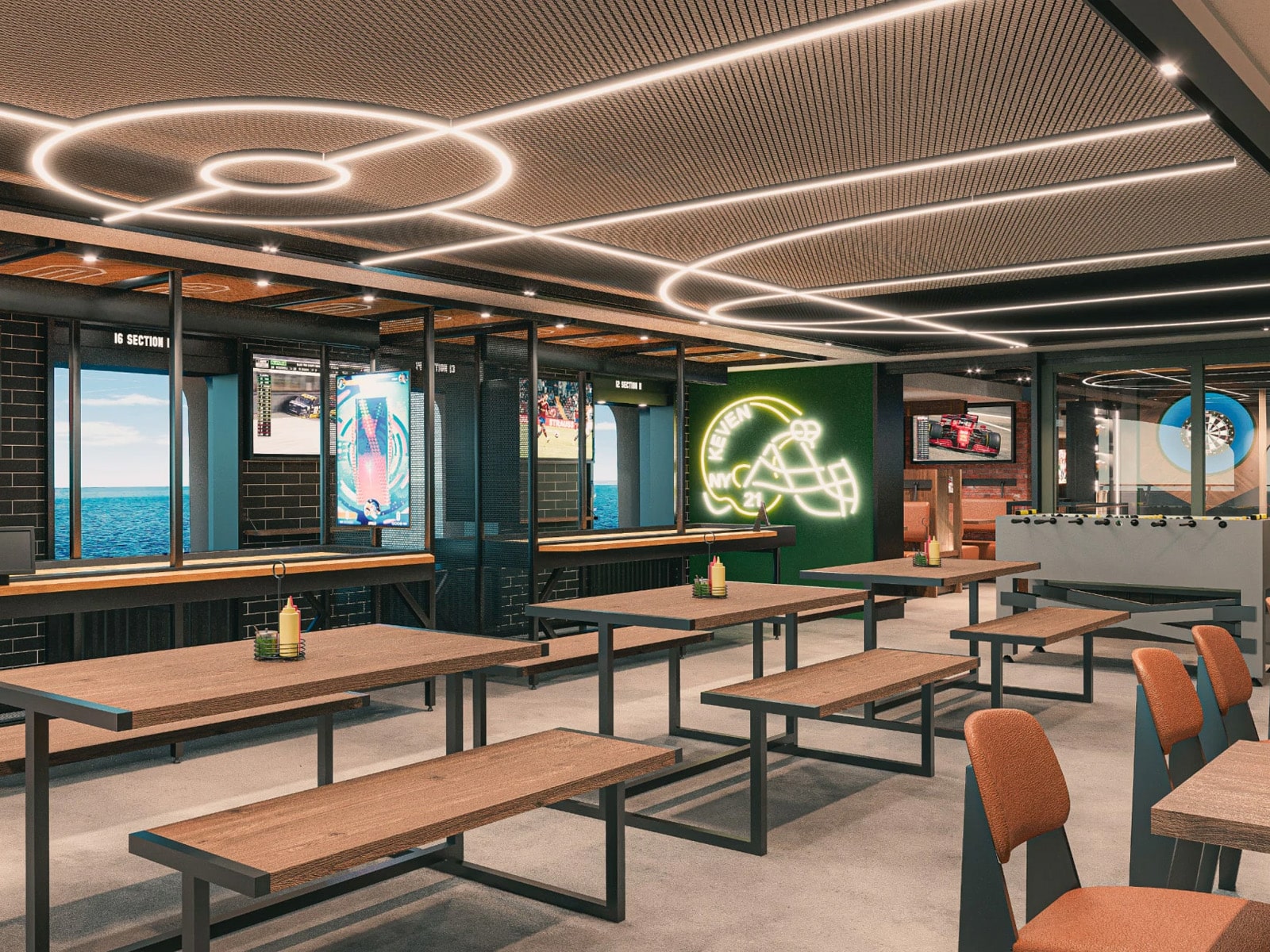 Inside, guests will find The Clubhouse, which is a reimagining of the Sportplex indoor sports and activity venues found on the other World Class ships. The space will include bumper cars, basketball, roller skating, the LEGO Family Zone, and classic table games.