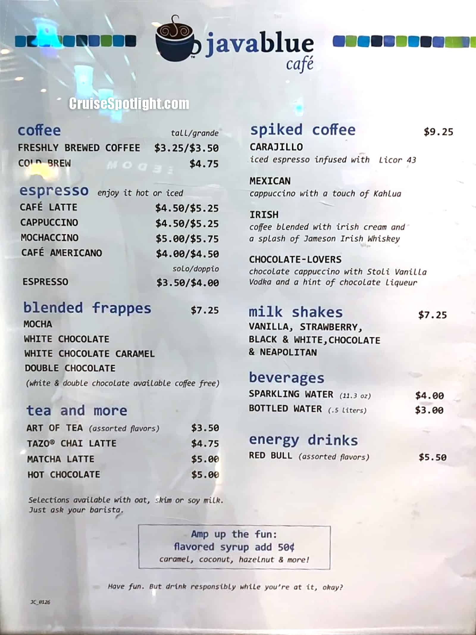 JavaBlue Cafe is the premier coffee place that's on board about half of the Carnival ships.