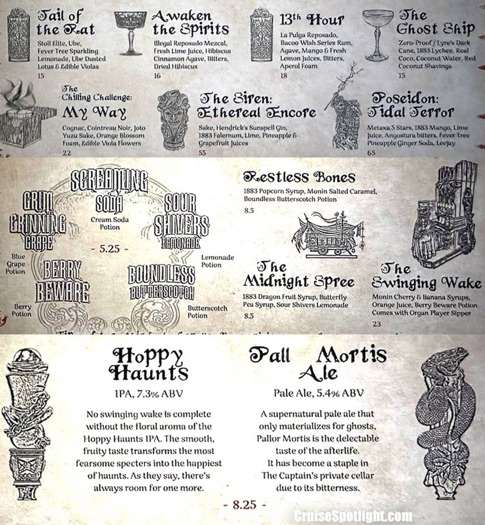 Inspired by the iconic attraction found across several Disney parks, this bar blends eerie design with playful storytelling. It's one of the best-themed bars in the entire Disney Fleet. Expect themed cocktails, clever details, and a fun atmosphere that still feels family friendly.