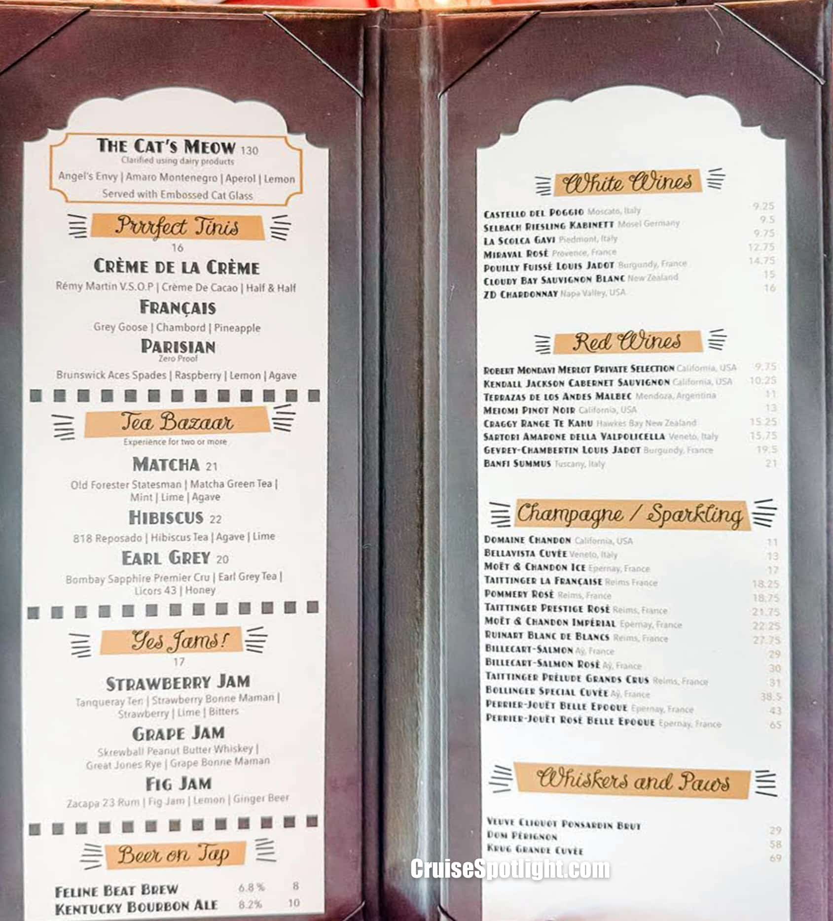 Disney Treasure has 12 different bars and lounges where you can enjoy a beer or cocktail. It also has 1 other bars that are available to select guests. Below you can see all the different bars that can be found on Treasure along with their current menus and prices.