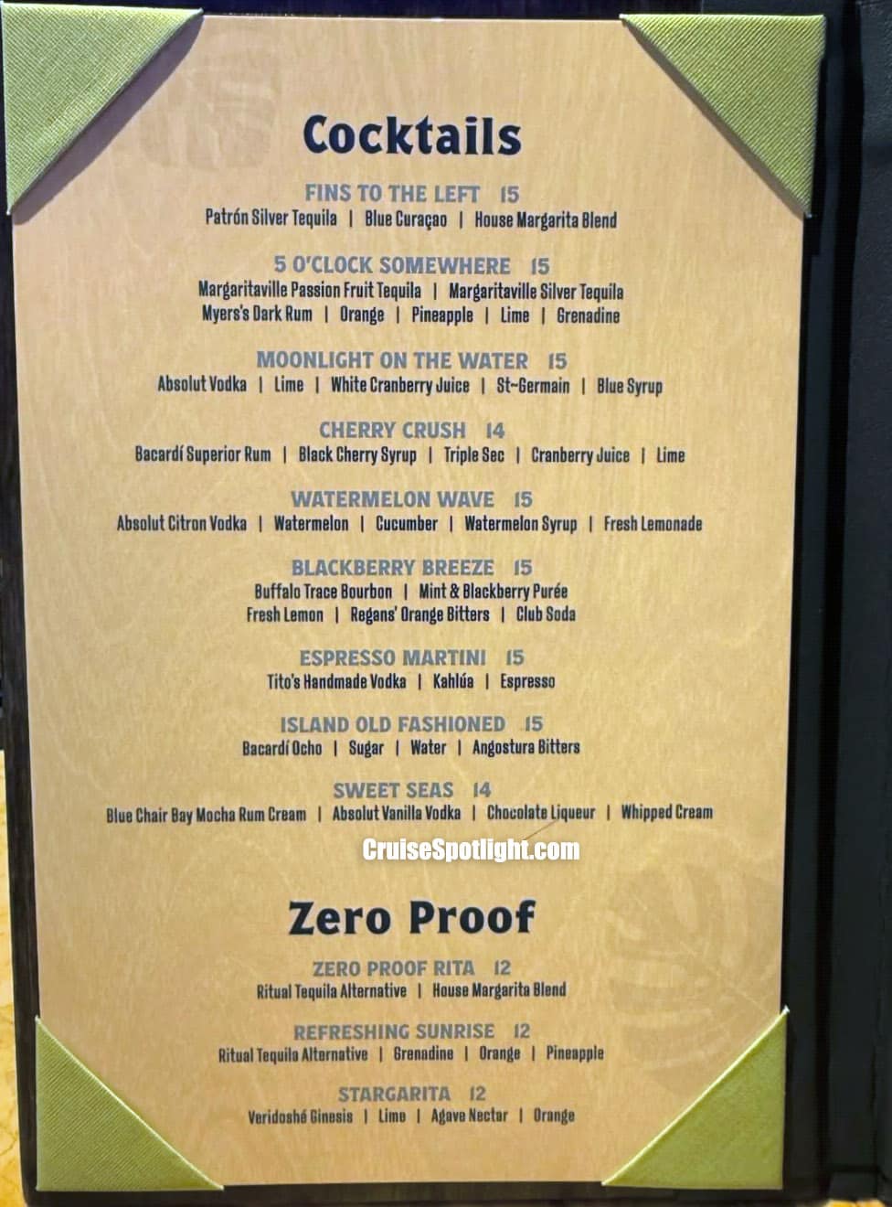 Margaritaville at Sea Paradise has 7 different bars and lounges where you can enjoy a beer or cocktail. Below you can see all the different bars that can be found on Paradise along with their current menus and prices.