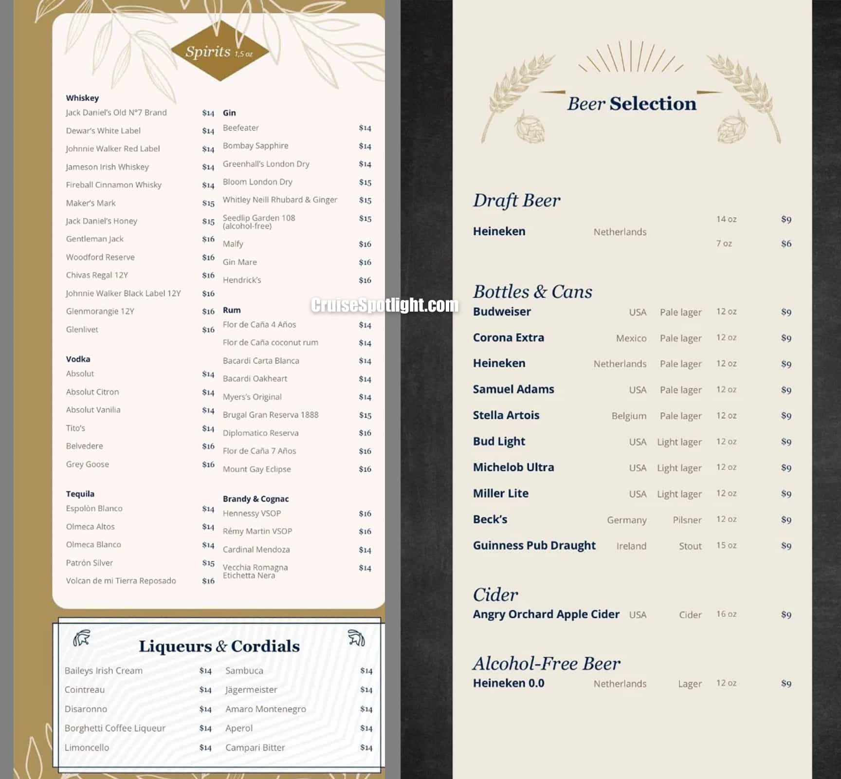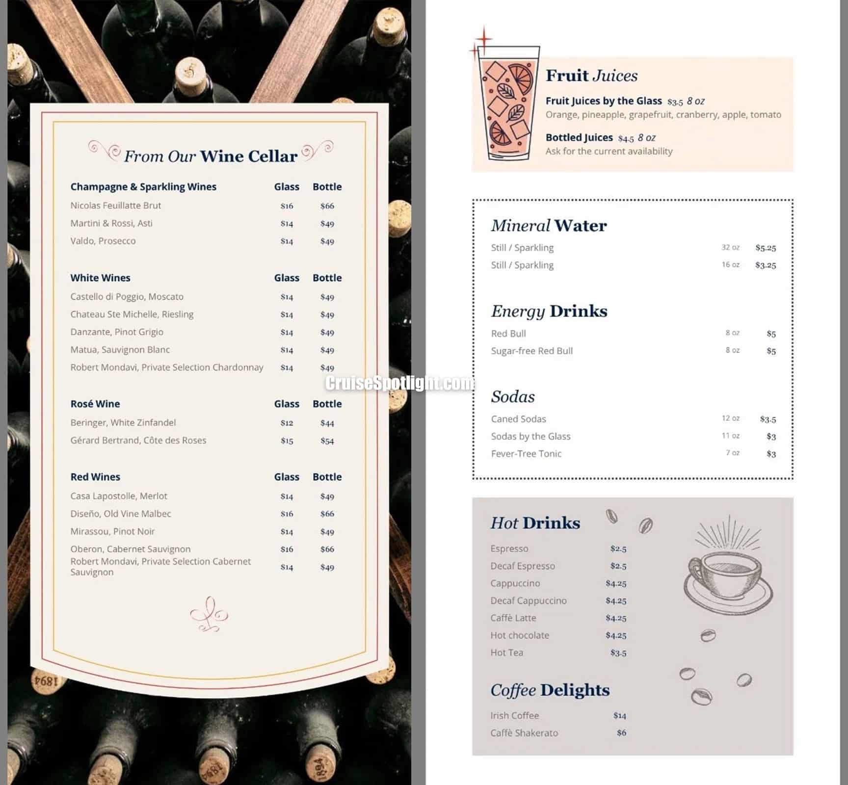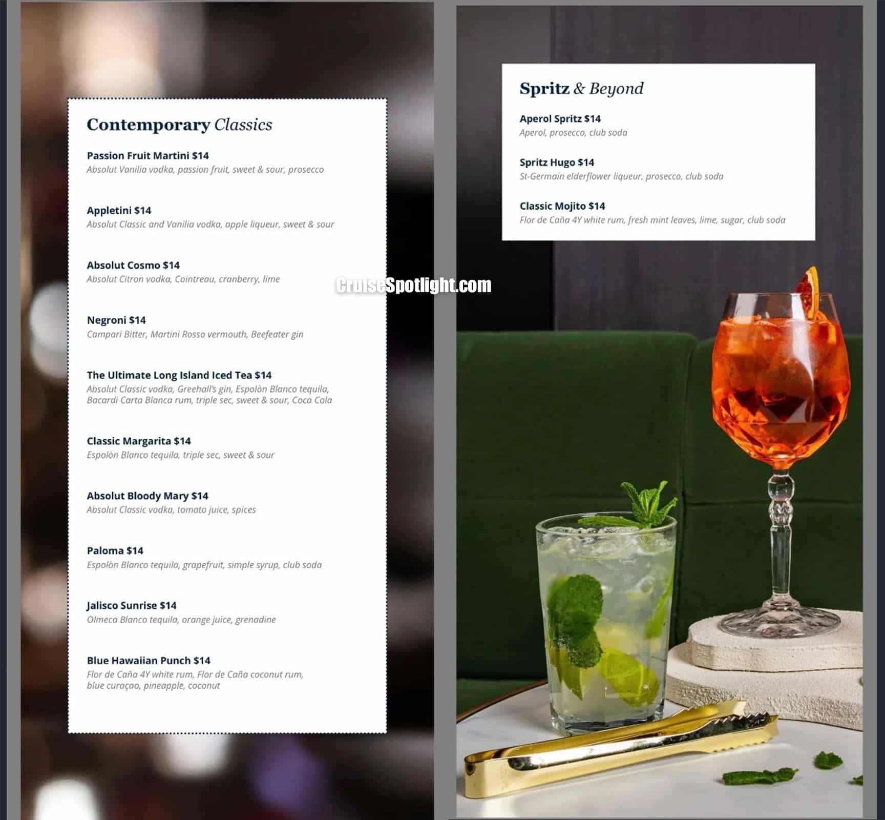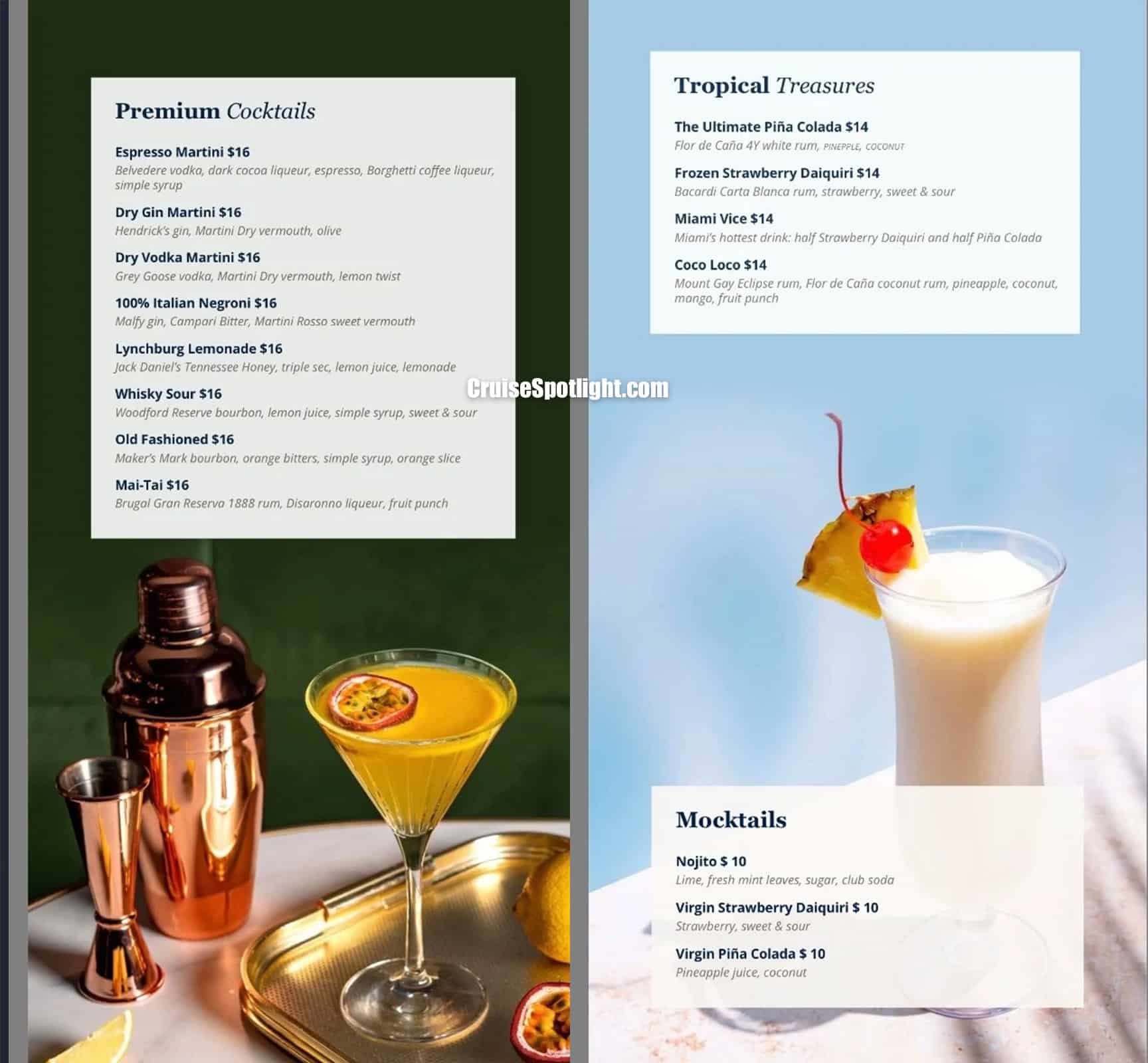 MSC Seascape has 16 different bars and lounges where you can enjoy a beer or cocktail. It also has 3 other bars that are available to select guests. Below you can see all the different bars that can be found on Seascape along with their current menus and prices.